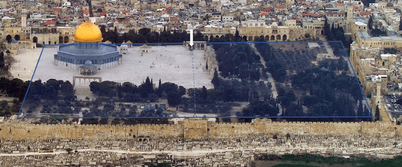One of the key arguments in my book, The Temple Revealed, is that the famed Golden Gate of the Temple Mount (or East Gate of the outer sanctuary) shown above, was in a direct line with the temple. This is really a core argument for why the Golden Gate stands as an irrefutable landmark of the East-West line of the temple, proving that this is truly the area where the temple was formerly located. This arrangement can be inferred in scripture from the design of the temple in Ezekiel chapters 40-42, but it is also described repeatedly in rabbinic literature. Take a look…